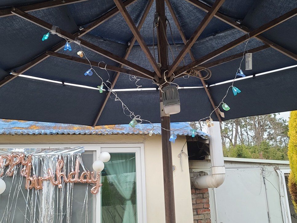 가족끼리 가까운 곳에 여행을 가서 생파를 한 거라 고기를 구워 먹어야 했기에 야외에 달았습니다.